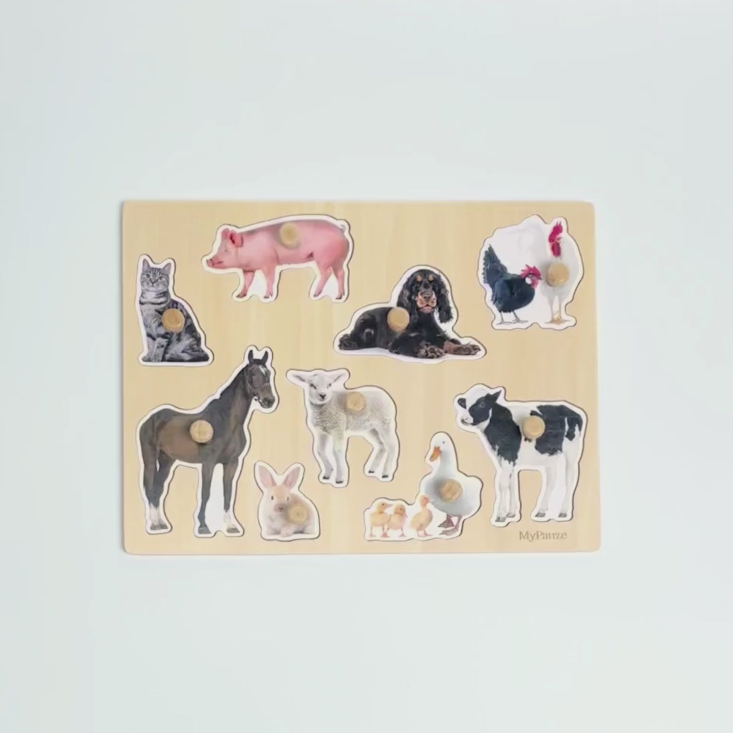 Ett roligt och lärorikt pussel med bondgårdsdjur. Perfekt för att hjälpa barn att känna igen djur och utveckla sin finmotorik. De färgglada bitarna är enkla att greppa och sätta på plats, vilket gör det till en engagerande aktivitet för små händer.