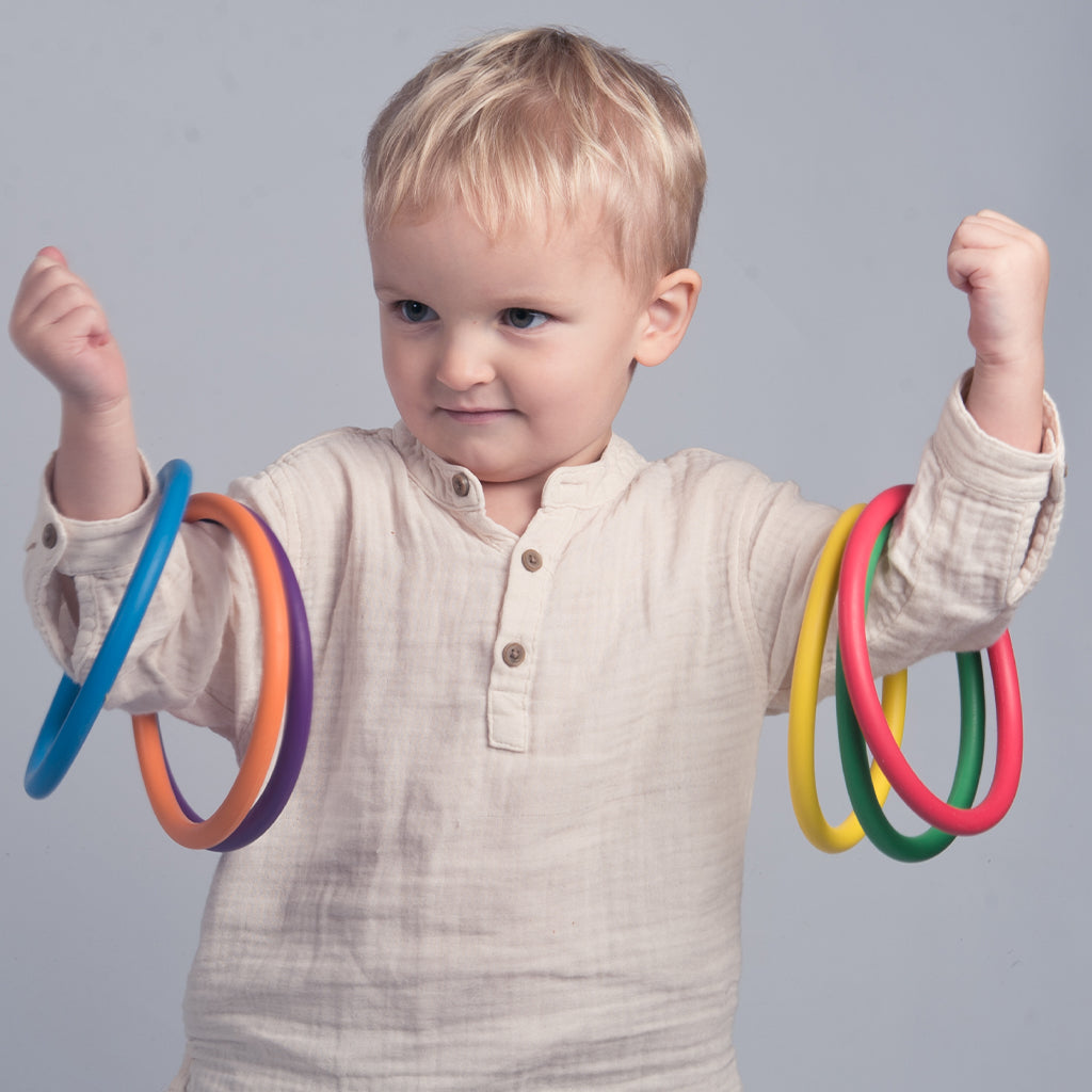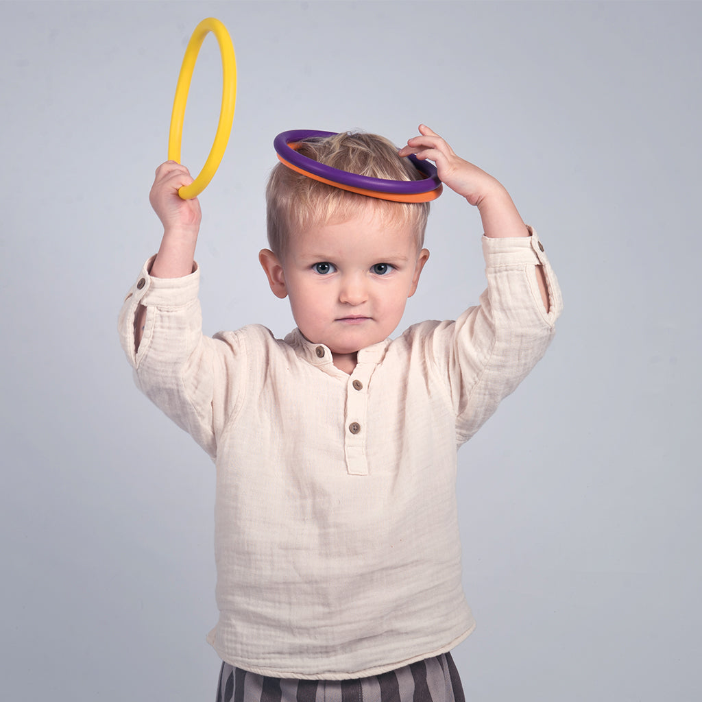 Colorful activity rings with many uses, such as juggling, throwing and catching exercises, dancing, balance games, counting exercises, and much more. Perfect for both individual play and group activities. Stimulates motor skills, coordination, and creativity. Easy to handle and great for encouraging active play and cooperation.