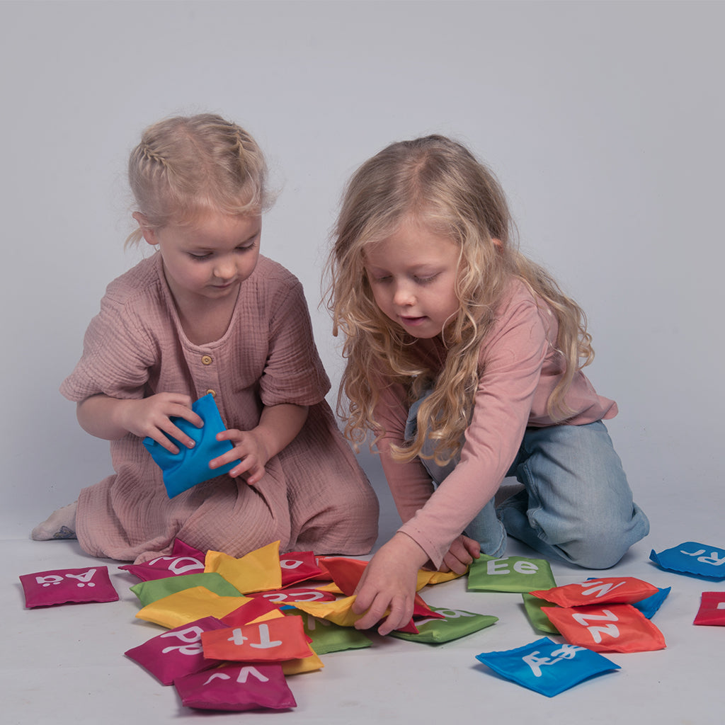 The 31 colorful bean bags with printed letters cover the entire alphabet and stimulate language development, concentration, and fine motor skills through playful activities. Perfect for both indoor and outdoor use, they offer endless possibilities for creative learning and movement.